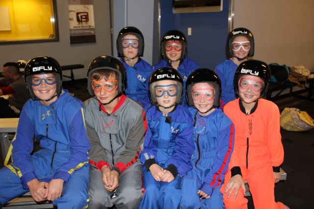 11/16/13 Just when you think the party is over – think again! Indoor skydiving, surfing & pizza. And the birthday is finally partied out! Ready for take-off L-R Back row Mr. T (being cool) Caden, Aubrey Front Row: Wyatt, Chase, Ari, Sierra, McKinley We adore these kids!