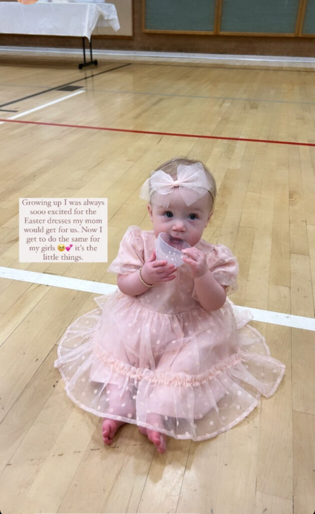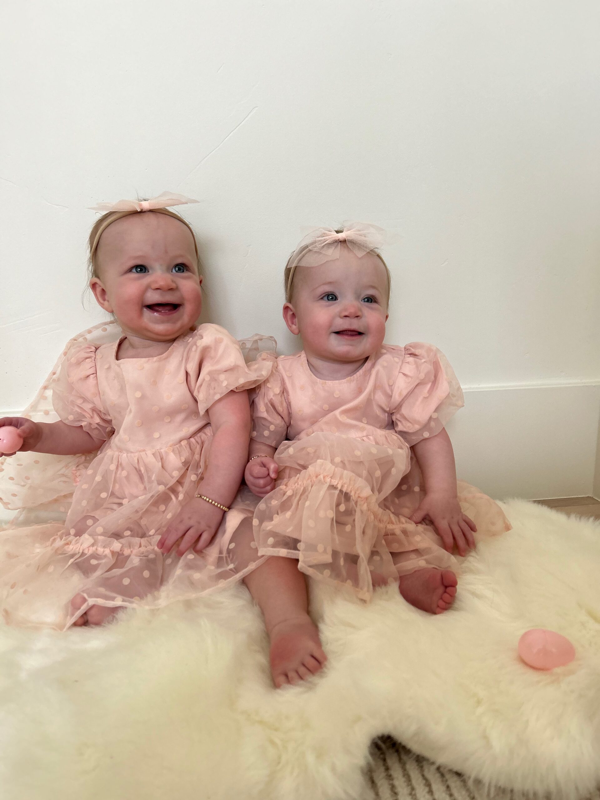 The girls first Easter dresses.