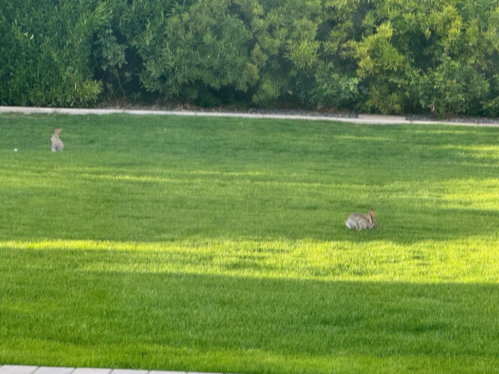 Some of my favorite views 1. On my walk 2. In front of Somerset 3. B’s latest painting 4. my trumpet vine 5. Our friendly little cottontails that hang out in our backyard.