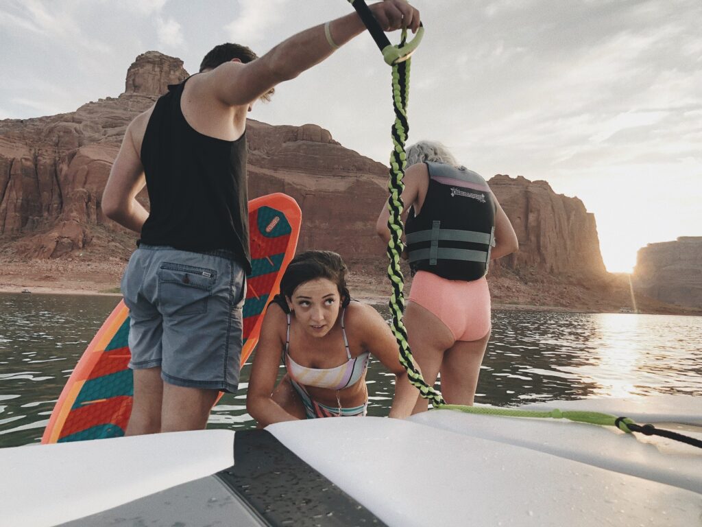 Abby is an amazing photographer and I have some very cool photos that she took of our trip. I’m writing this in March 2021, so my memory is not great about our trip and the details. I’ve been asking the kids about memories of the trip. We invited the Martin’s along since they have spent a lot of time at Lake Powell plus they just bought a new boat and honestly boating is not our life blood like some people out there on the lake. We are learning and there’s a lot to learn. I am sure between Master D, Jake and TT – we’ll be considered master boaters before long since they love it so much.