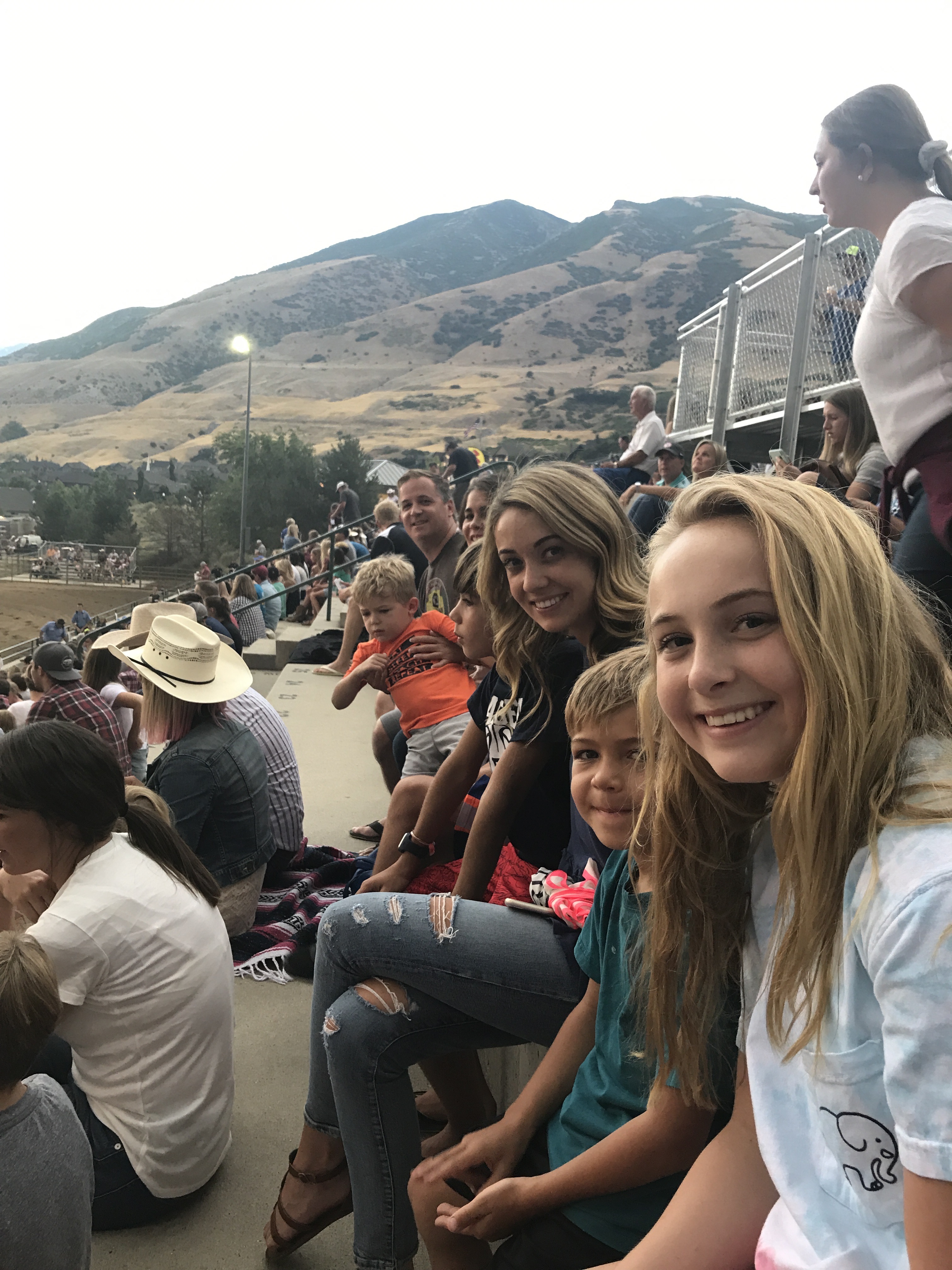 Saturday night we hit the Draper Rodeo..for about a half hour until the lightening, thunder and ginormous rain drops made their way over to us. By the time we ran to our cars, we all looked like drowned rats, except for Lelu who was the only one smart enough to bring an umbrella.
