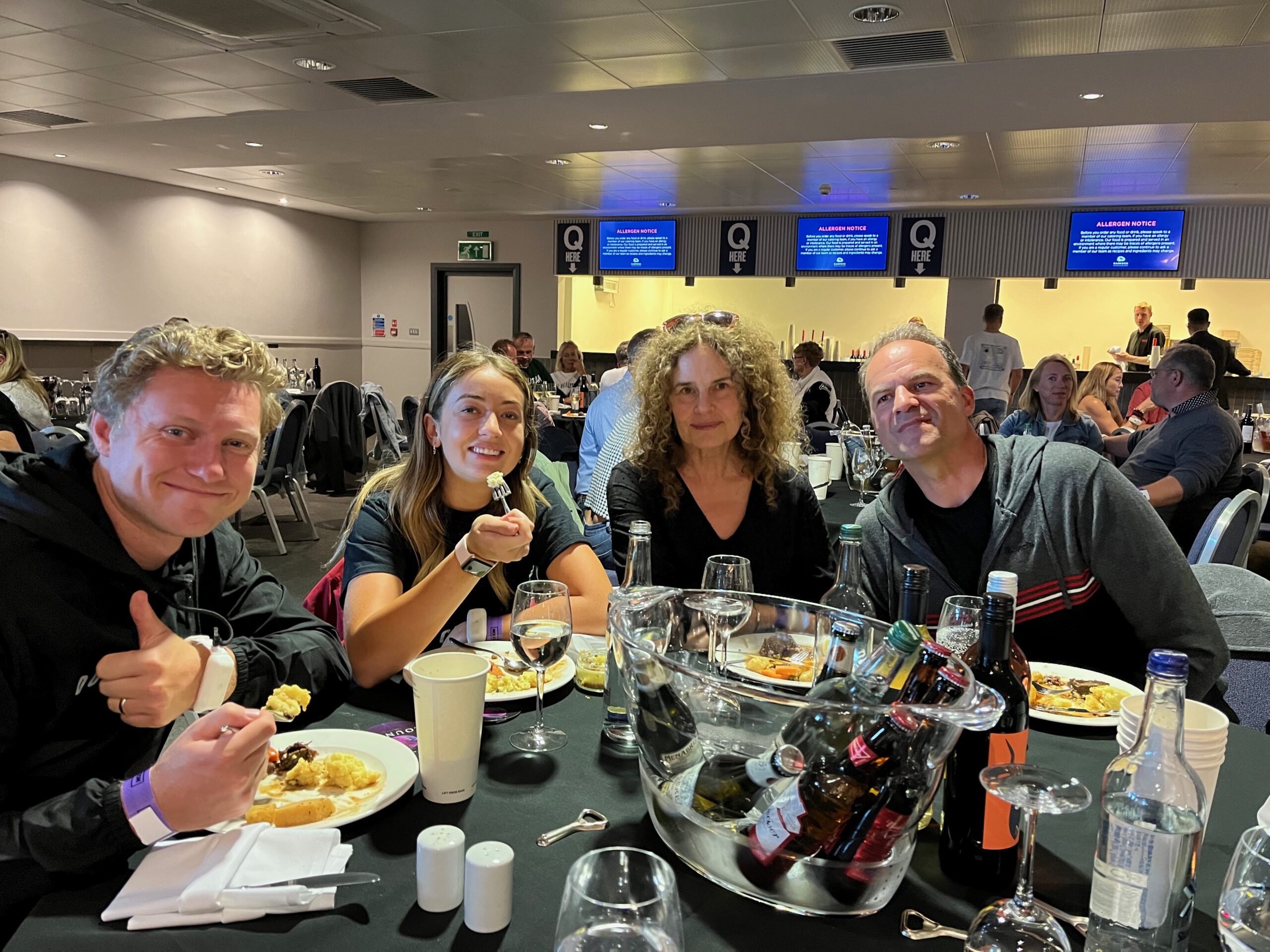 Do you see all of the cups behind me? That was my middle-aged cohort sitting next to me’s beers. And she drank them all but one that spilled all over the floor and my feet.